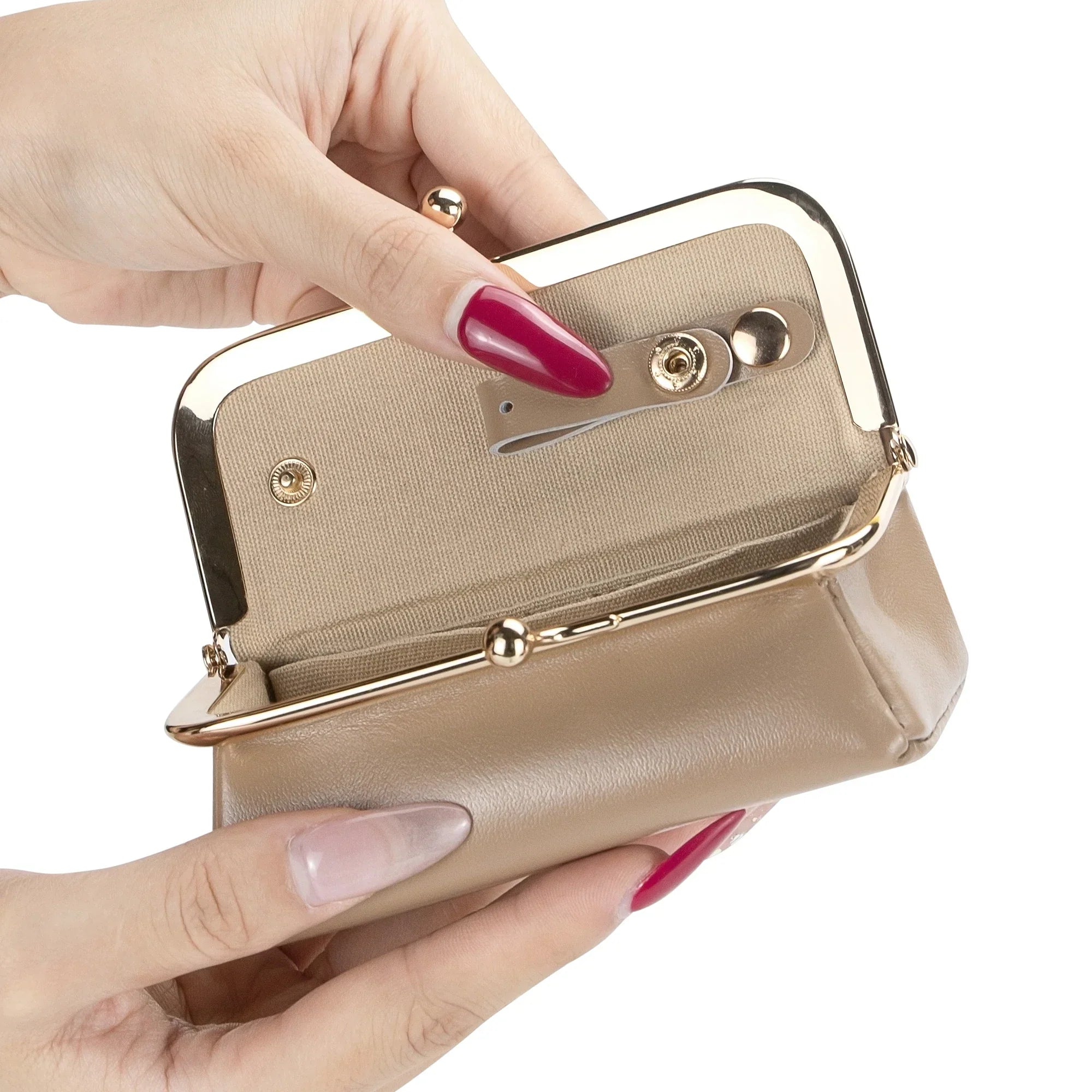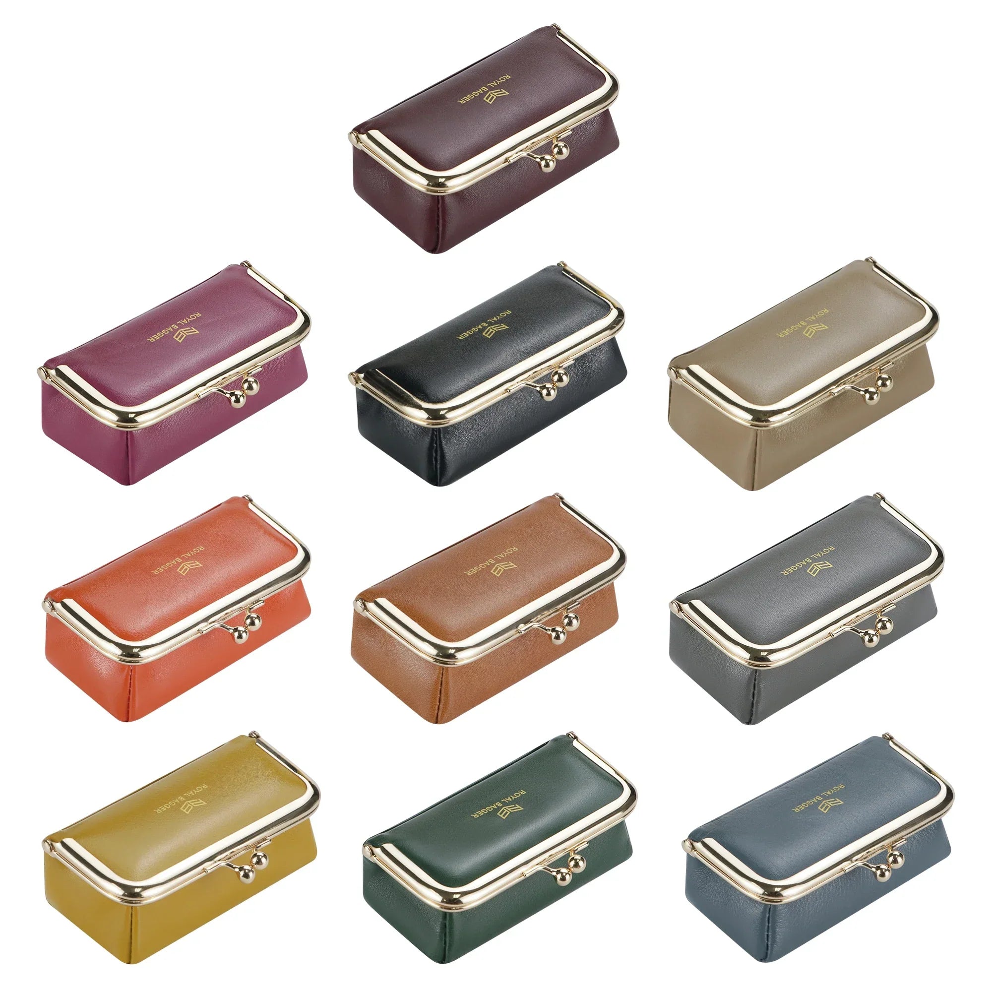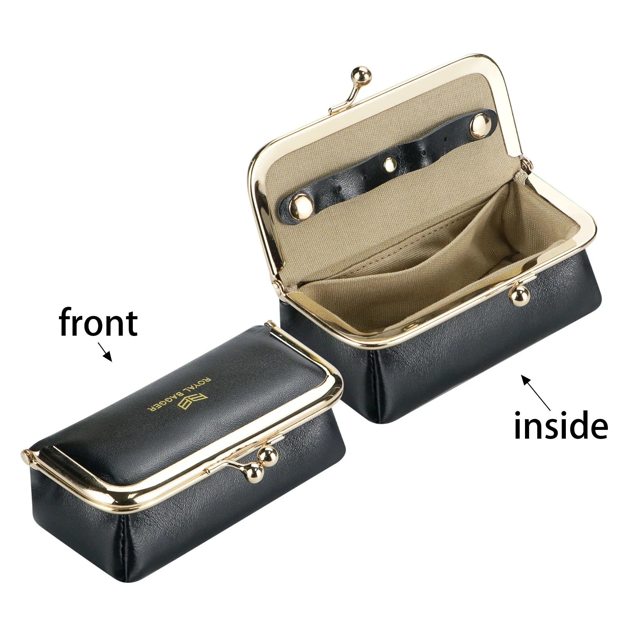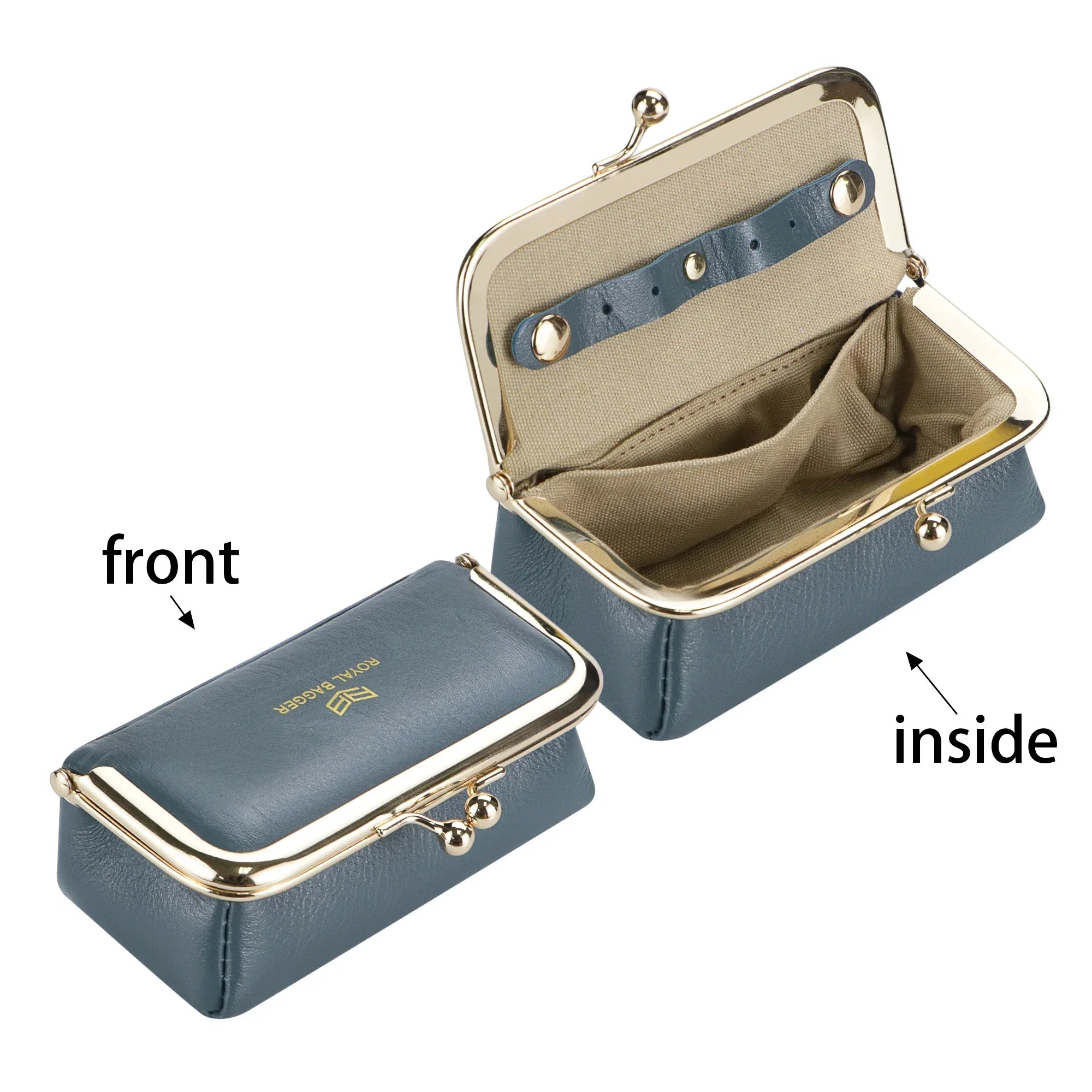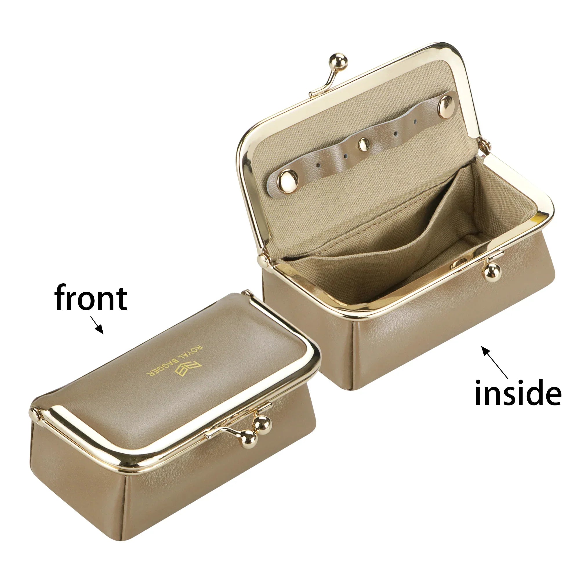 Royal Bagger Genuine Leather Jewelry Box, Mini Organizer for Rings, Necklaces & Earrings, Women's Kiss Lock Coin Purse 3125