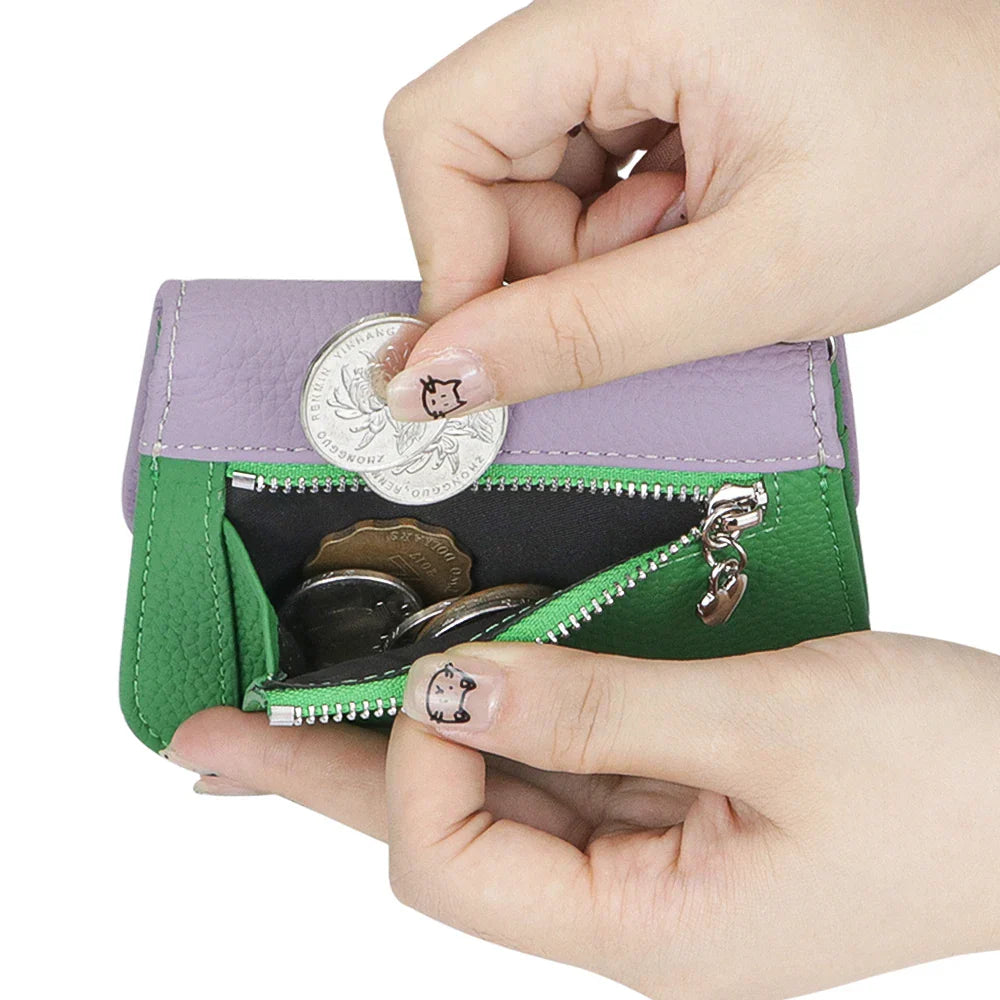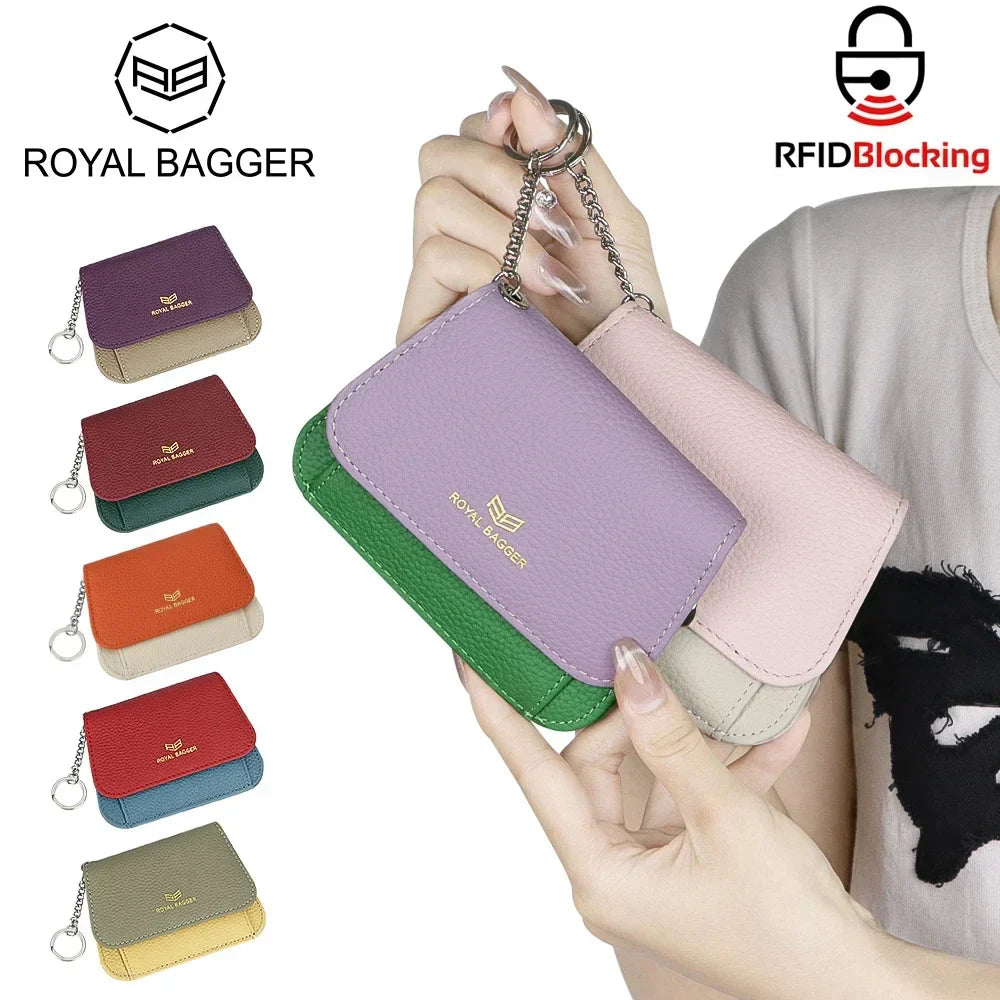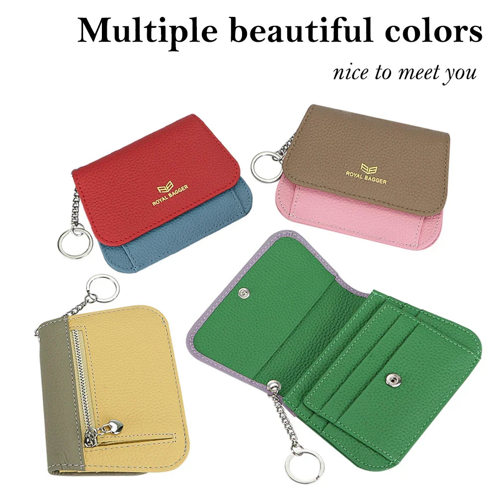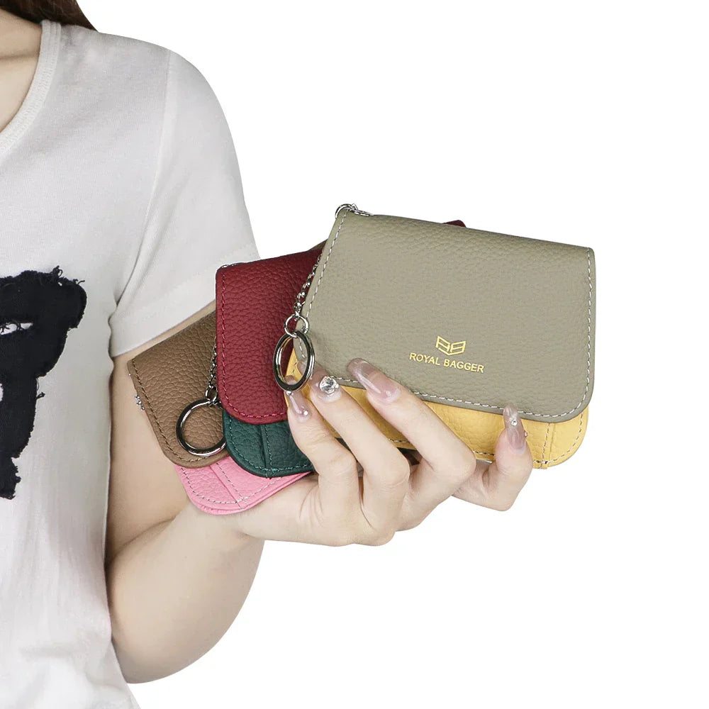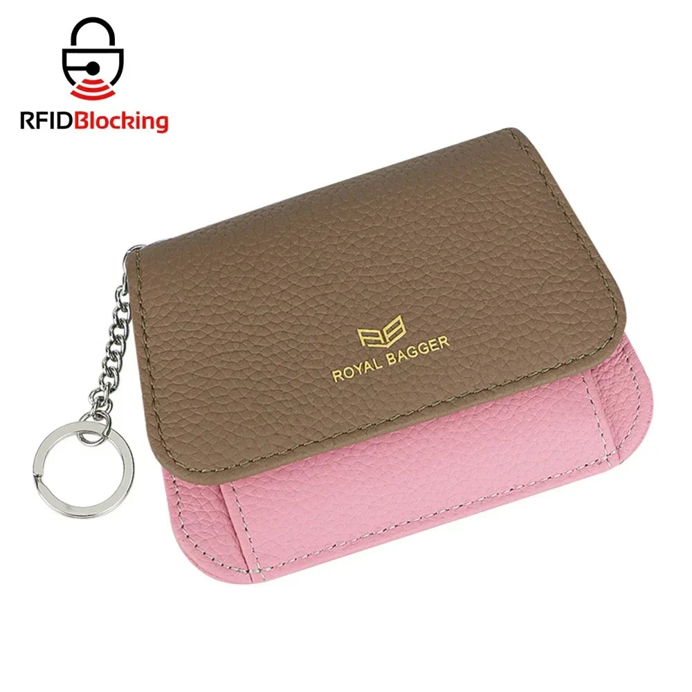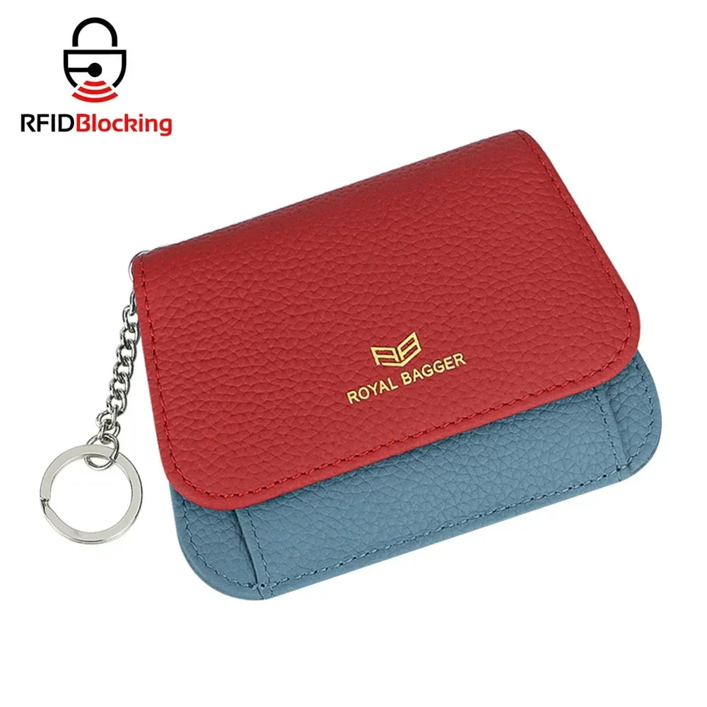 Royal Bagger Multi-card Slots Short Wallet, Genuine Leather Credit Card Holder, RFID Blocking Card Coin Purse with Keychain 1943
