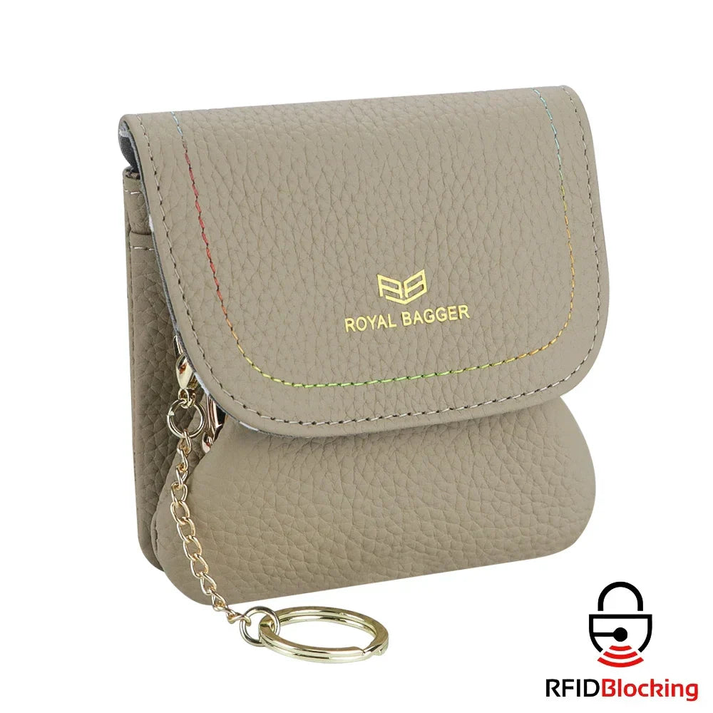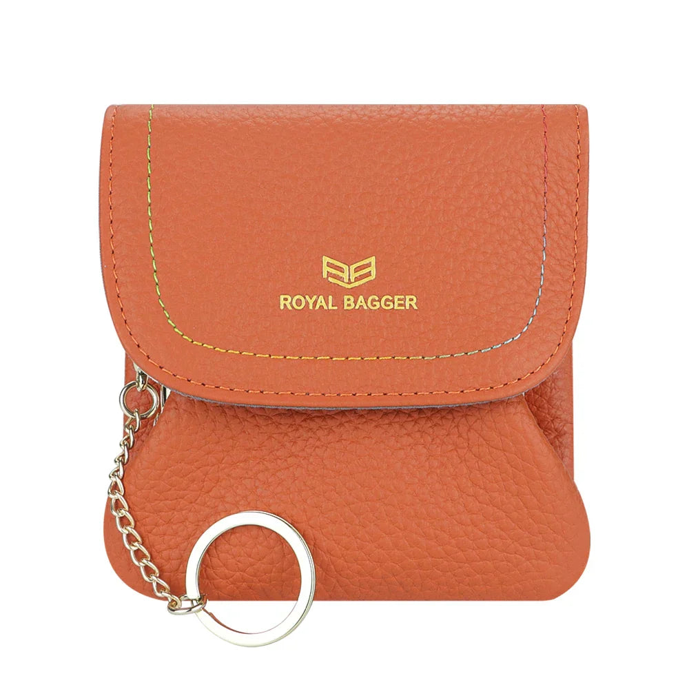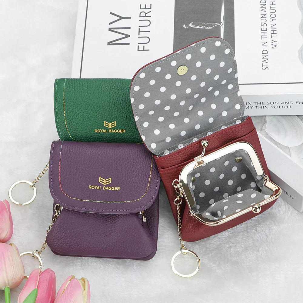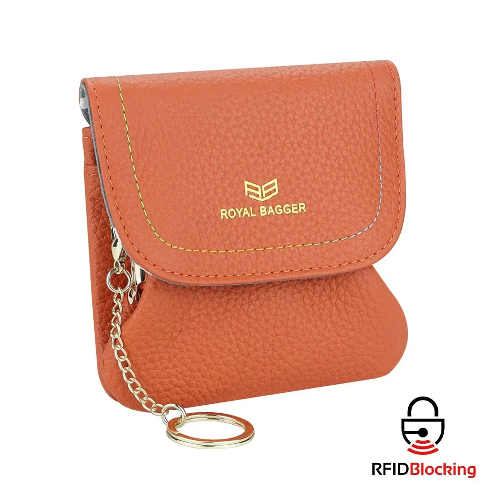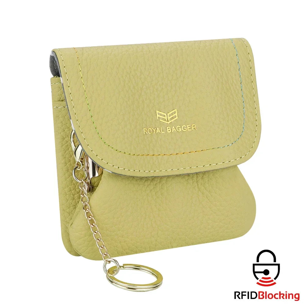 Royal Bagger Kiss Lock Coin Purse for Women RFID Simple Card Holder with Removable Keychain Genuine Leather Storage Bag 2622