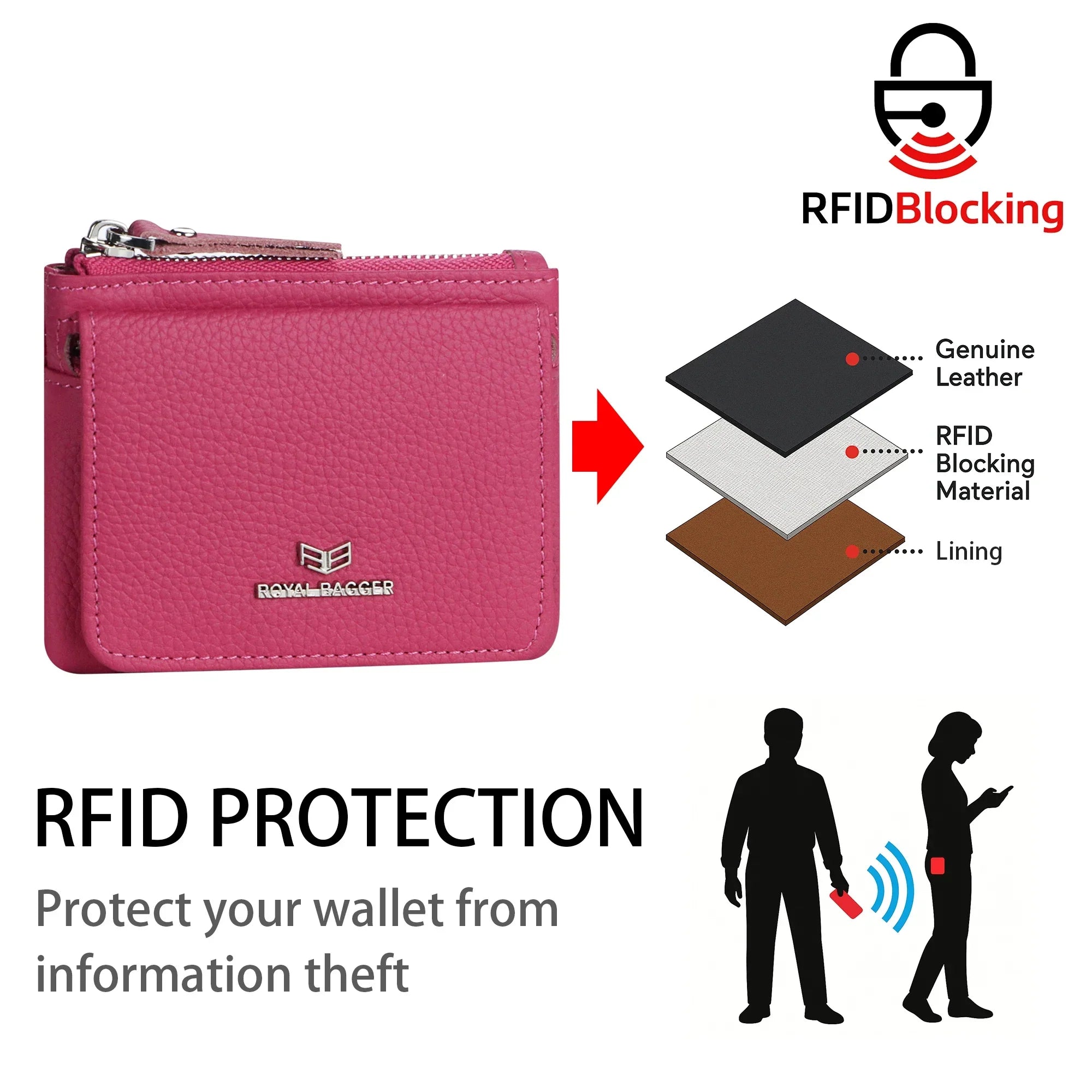 Royal Bagger Genuine Leather Women's Coin Purse - RFID Blocking Small Wallet, Casual Zipper Change Pouch for Daily Use 3200