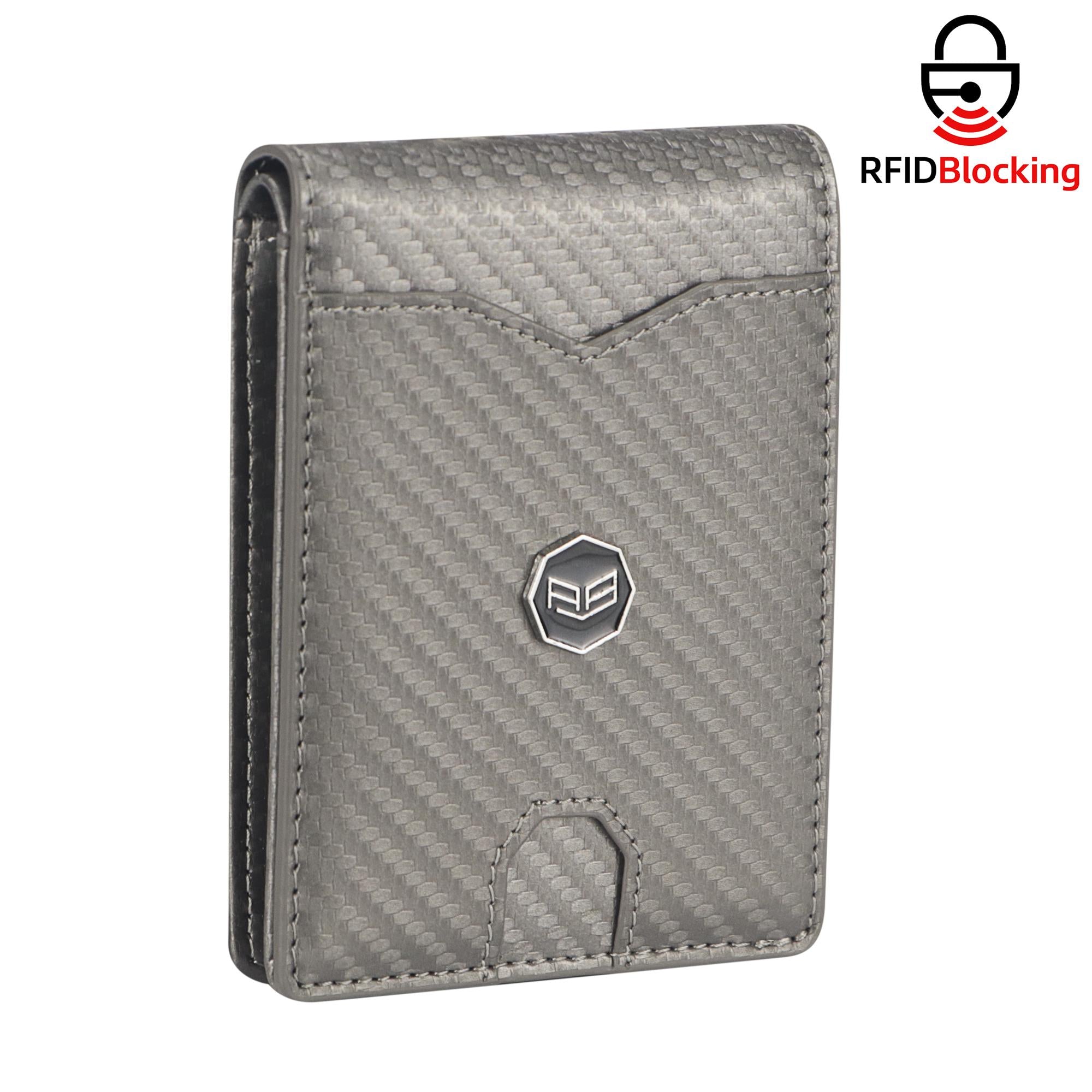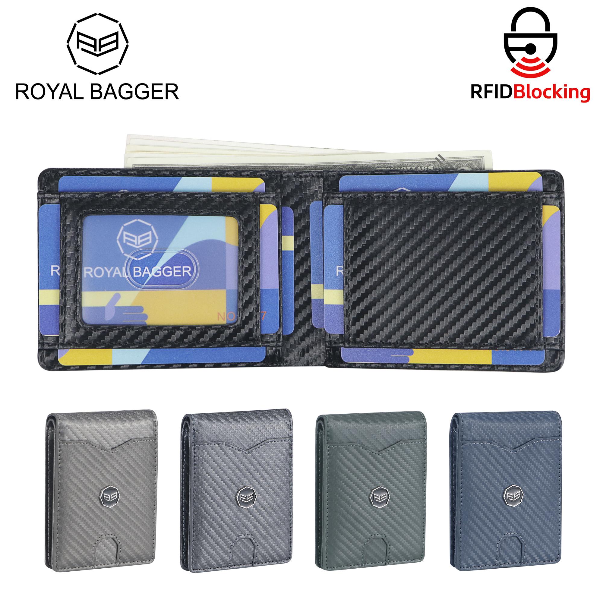 Royal Bagger Men's Genuine Leather Wallet RFID Card Holder Carbon Fiber Wallet Large Capacity Two Fold Wallet 3240