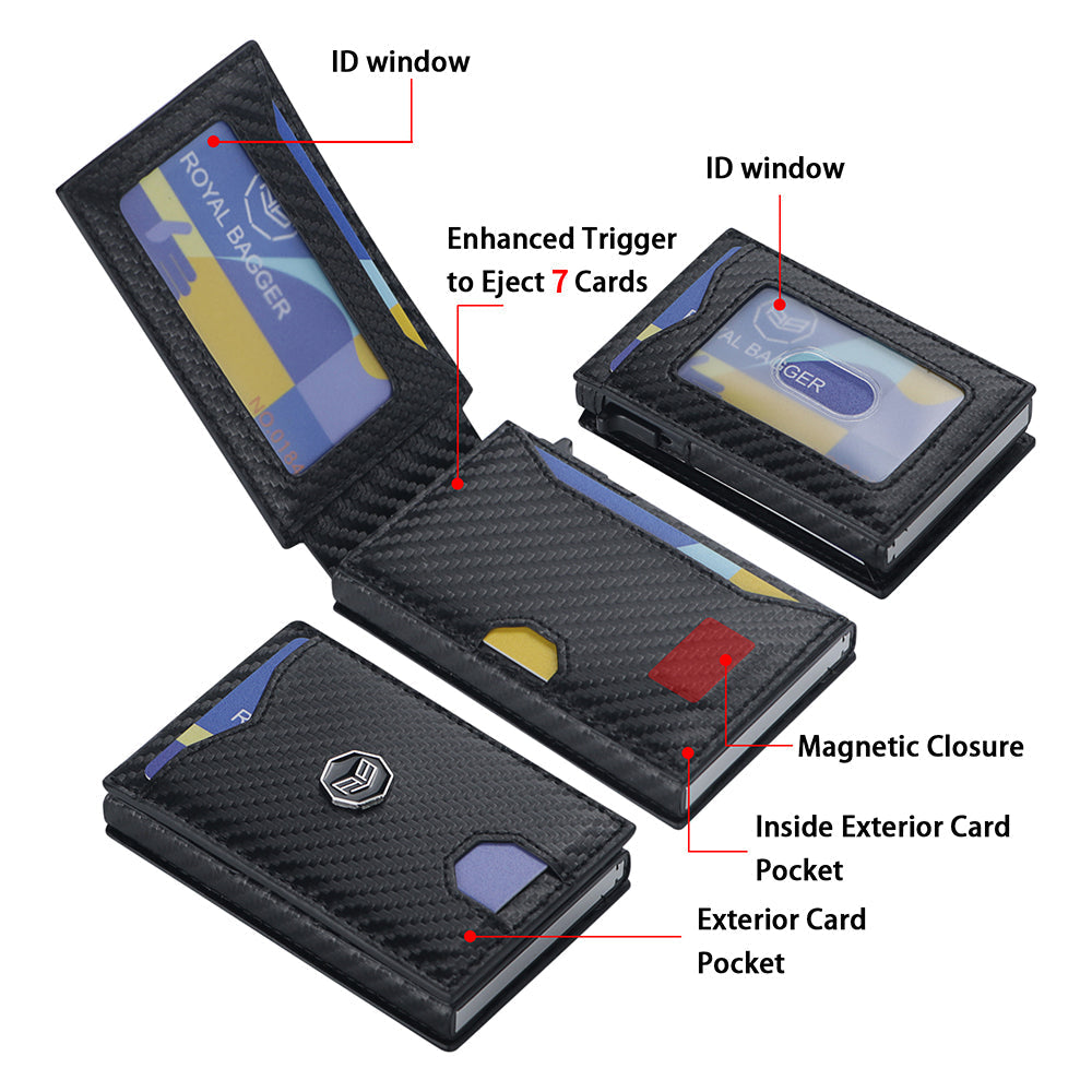 Royal Bagger Carbon Fiber Men's Wallet, Quick Card Access, RFID Blocking, 12 - Card Capacity with ID Window & Magnetic Closure 3246