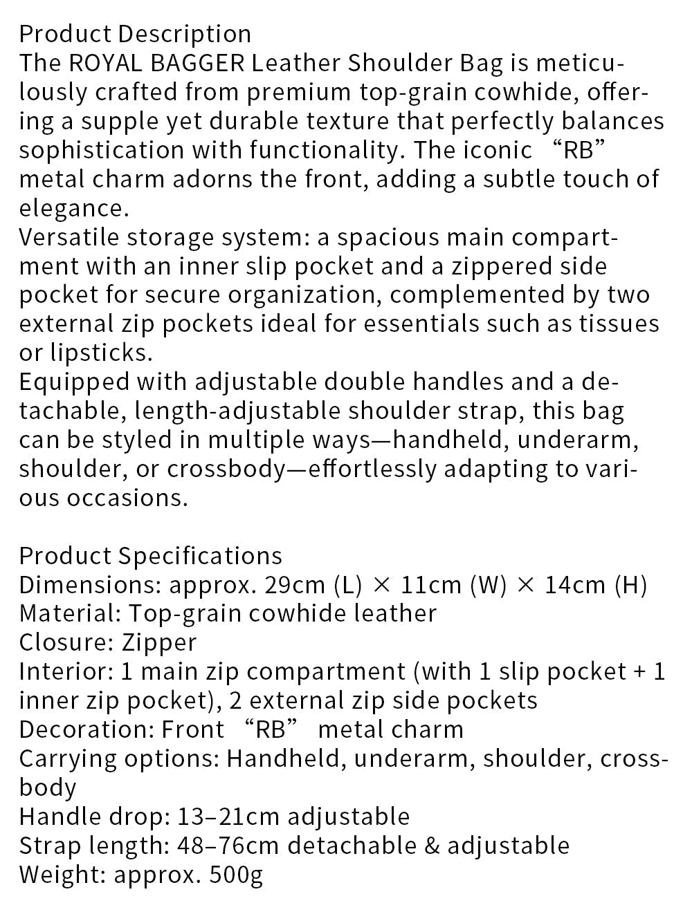 Royal Bagger Crossbody Bags for Women, Genuine Soft Cow Leather Shoulder Purse, Elegant Handbag with Adjustable Strap 3261