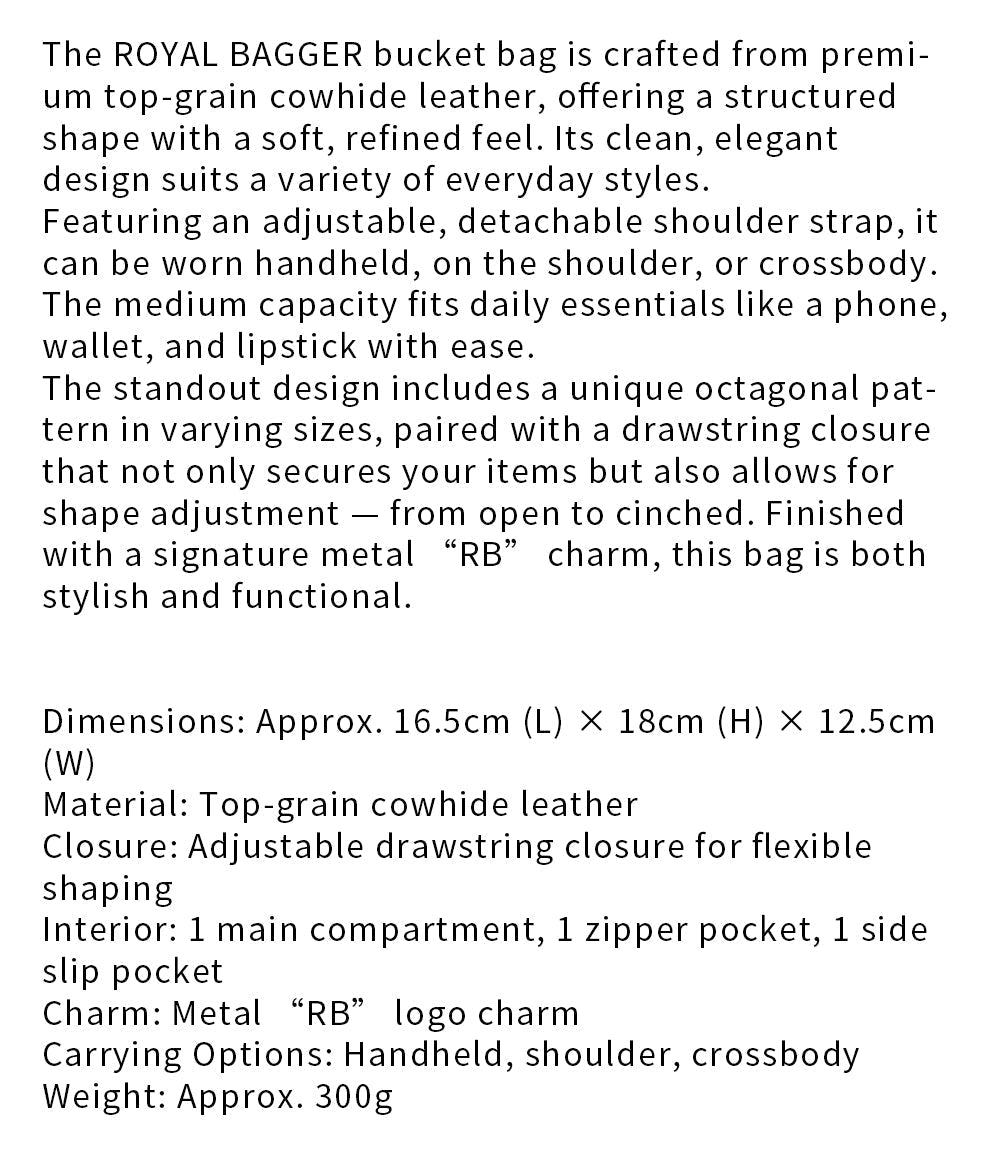 Royal Bagger Fashion Retro Bucket Bag for Women, Genuine Cowhide Leather Handbag, Elegant Shoulder Crossbody Purse 3266