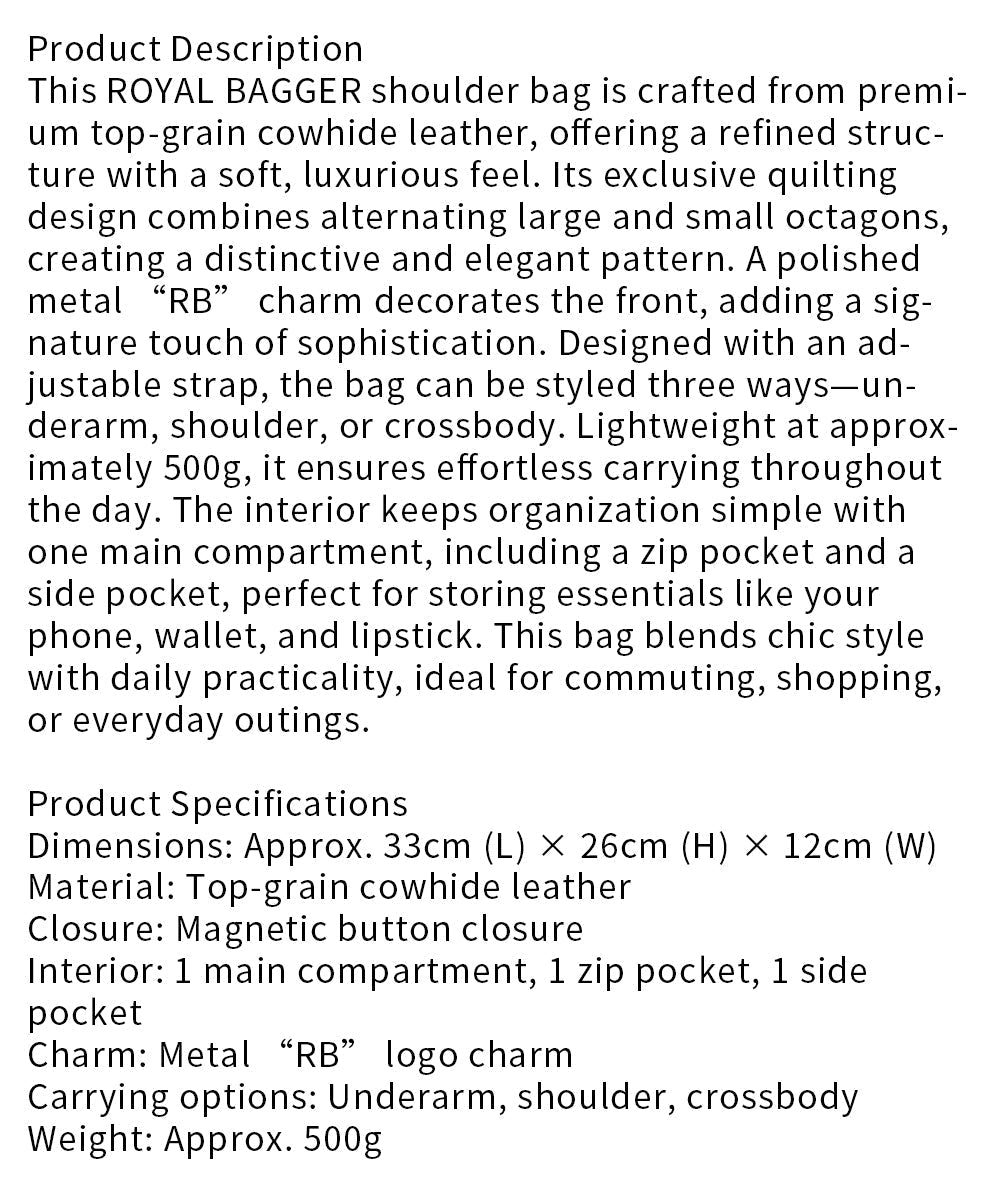 Royal Bagger Genuine Leather Quilted Crossbody Bag for Women, Soft-Textured Underarm Purse, Versatile Shoulder & Crossbody for Commuting 3267