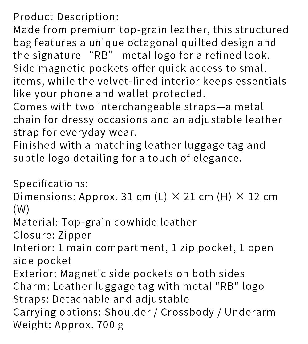 Royal Bagger Genuine Cow Leather Quilted Crossbody Bag, Large Capacity Tote Handbag, Chain Shoulder Purse for Women 3270