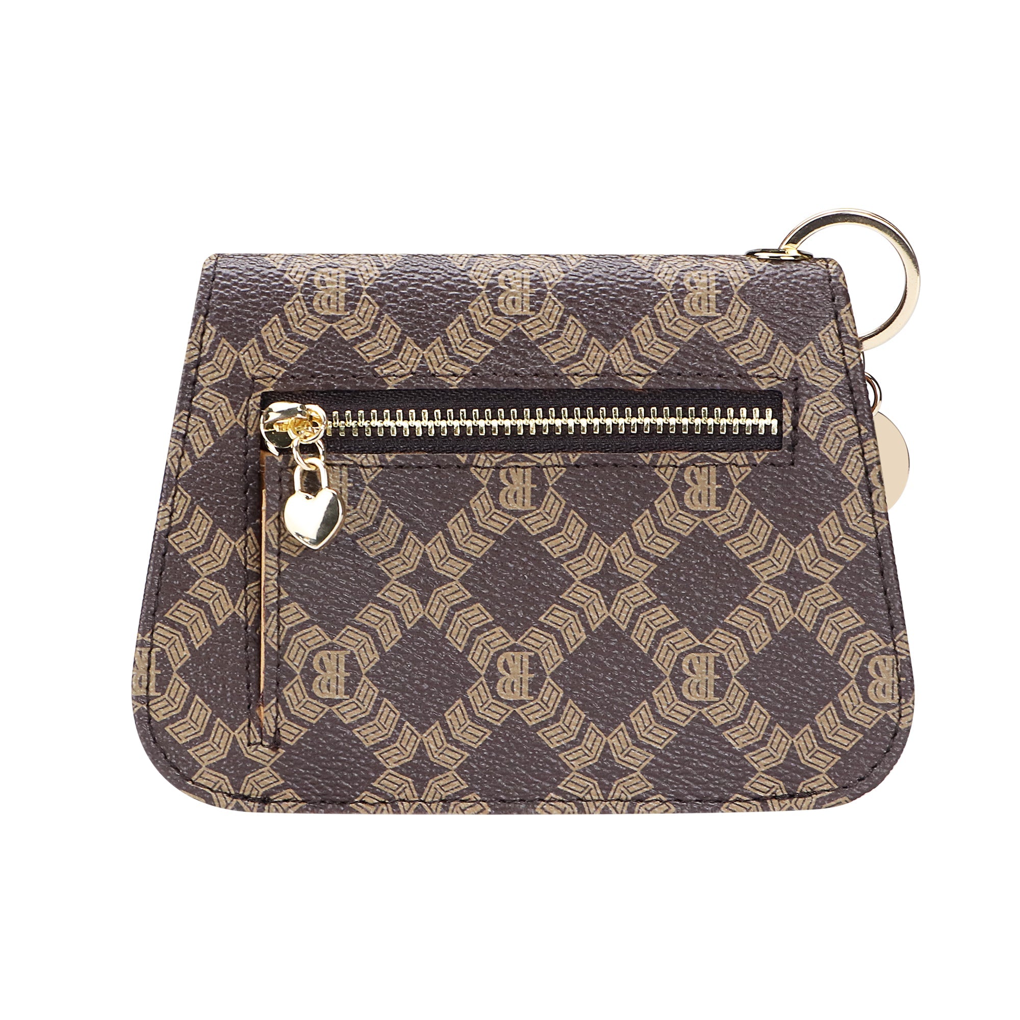 Royal Bagger RFID Women's Multi-Card Slots Wallet – Signature Coated Canvas & Vegetable-Tanned Cowhide Leather Credit Card Holder, Coin Purse with Keychain 3443