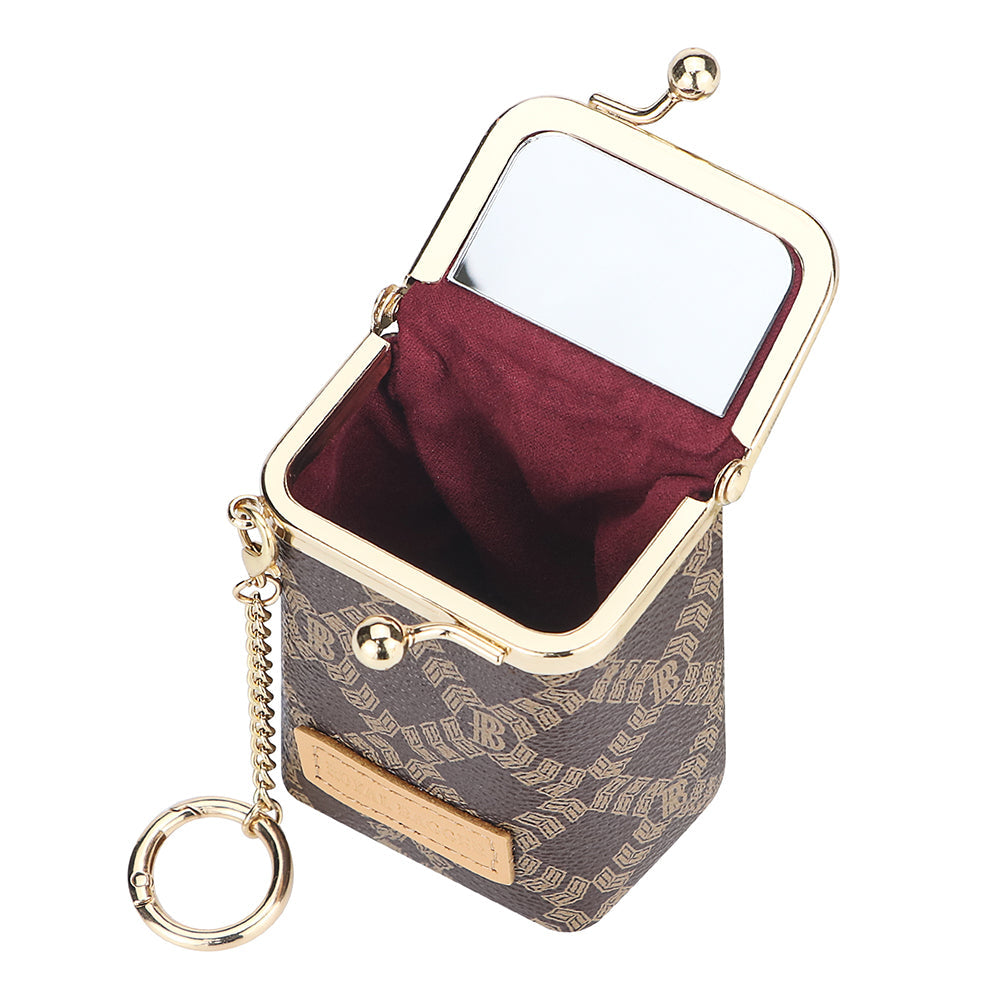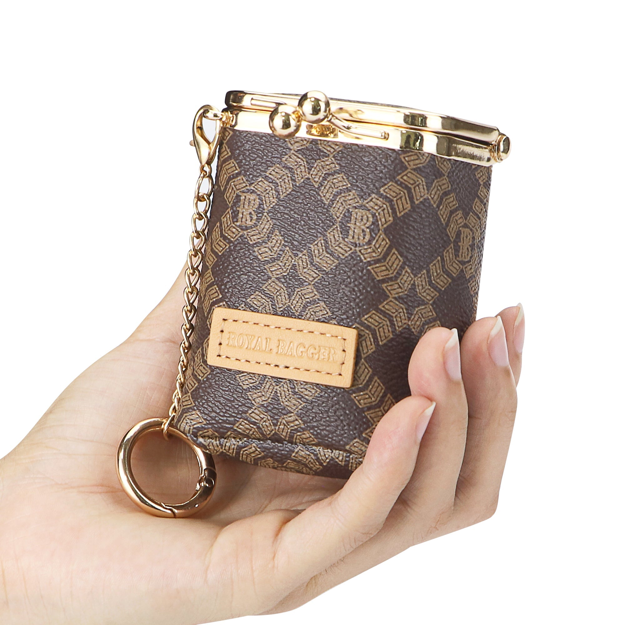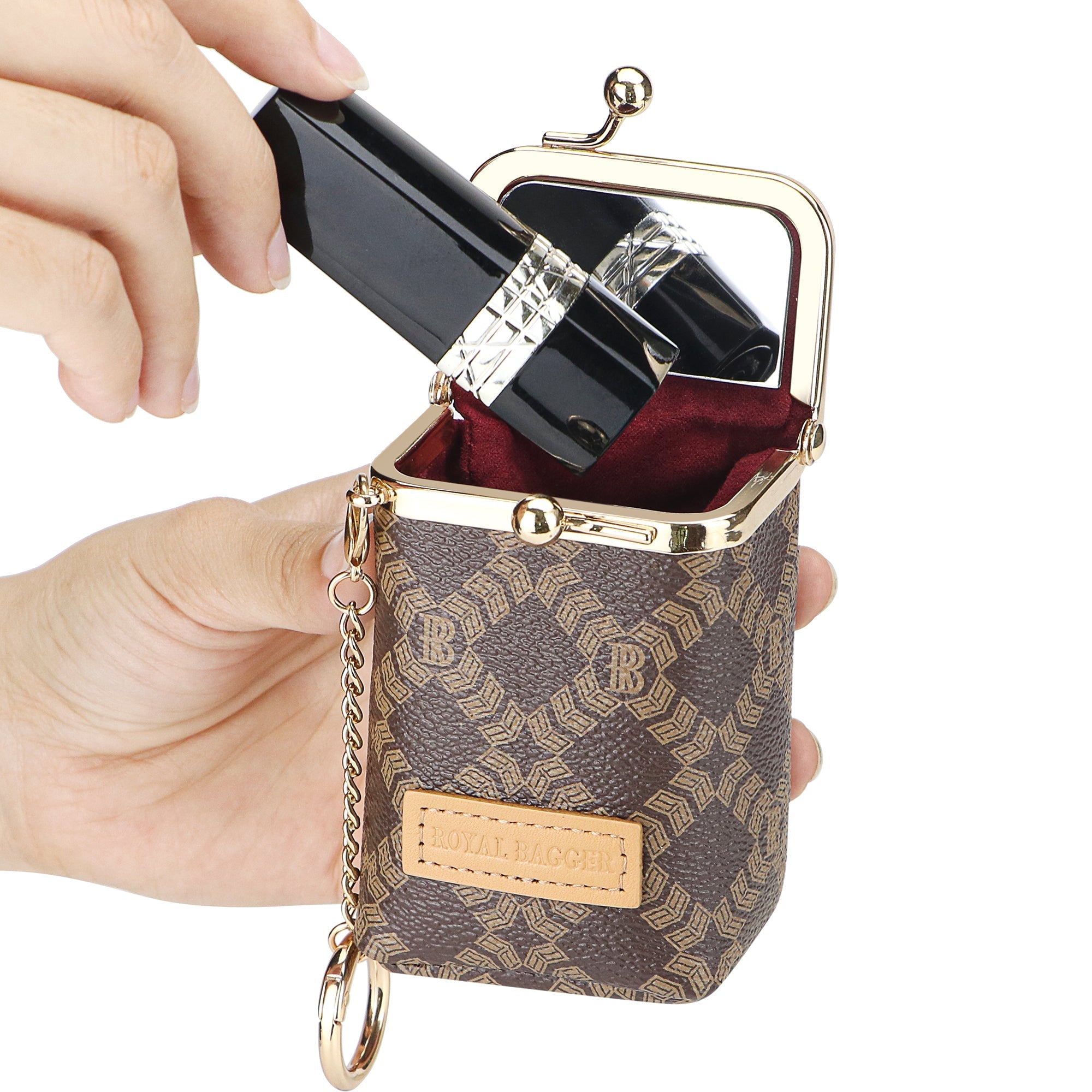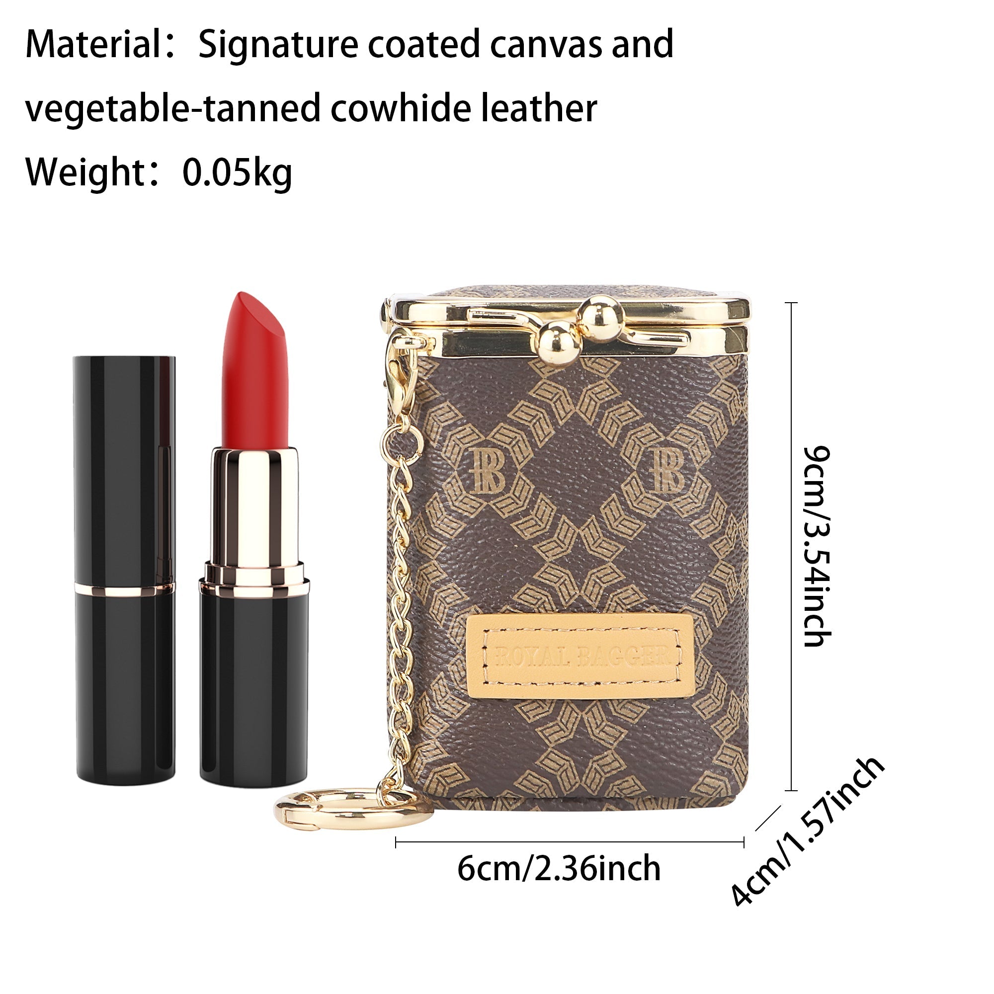 Royal Bagger Women's Mini Chain Cosmetics Case, Signature Coated Canvas & Vegetable-Tanned Cowhide Leather Kiss Lock Purse, Small Makeup Bag with Mirror 5241