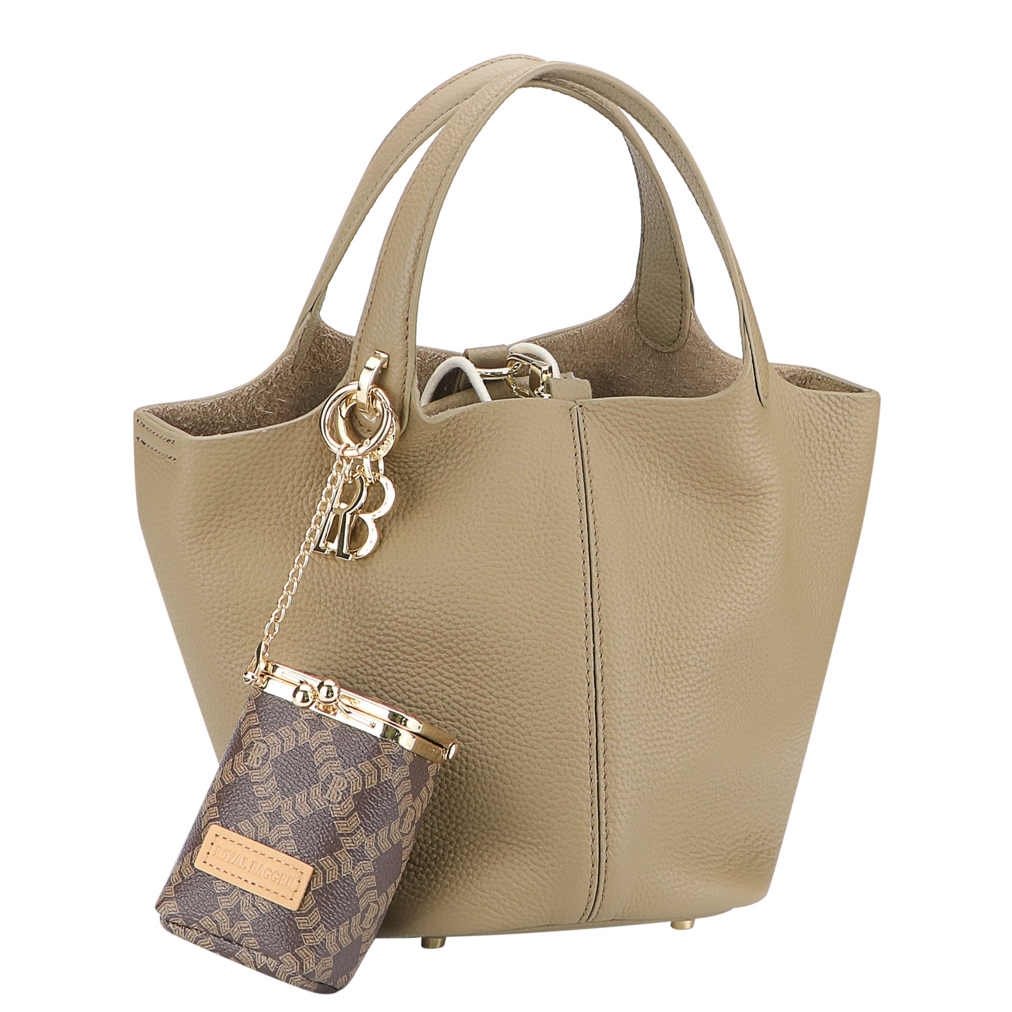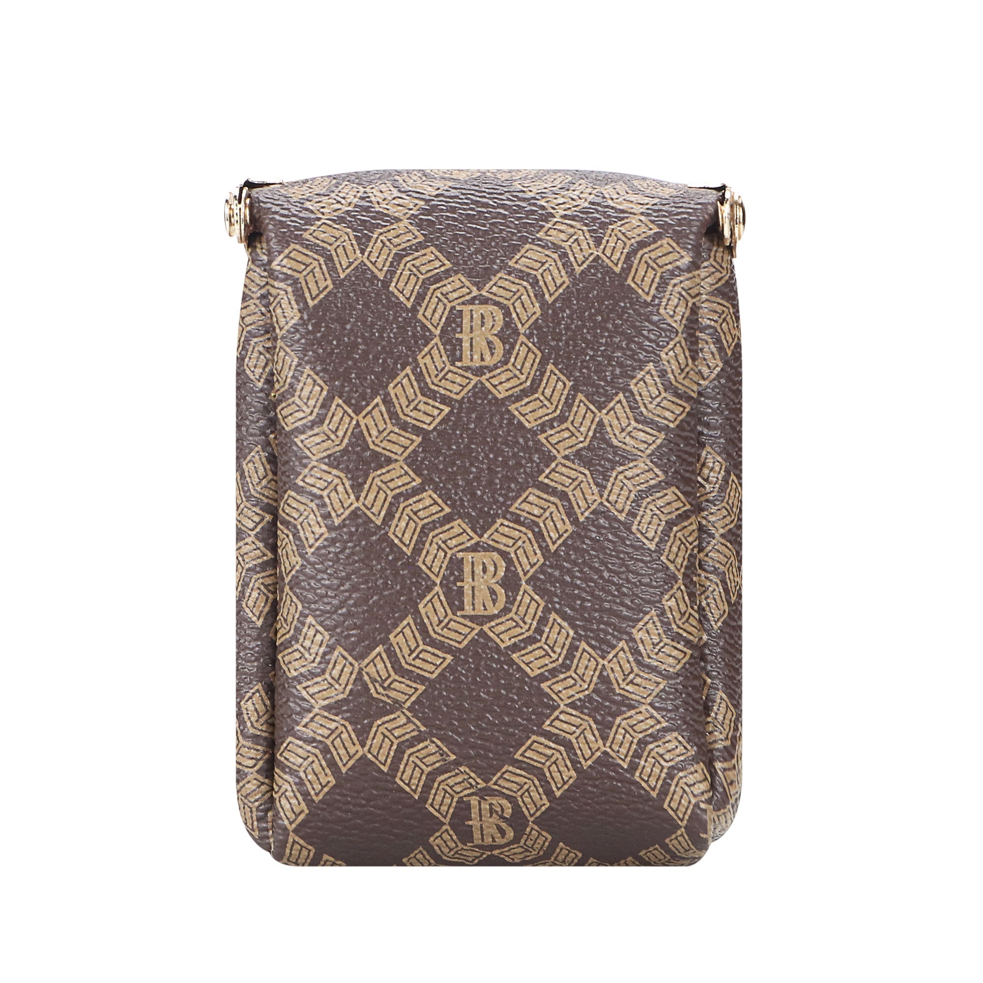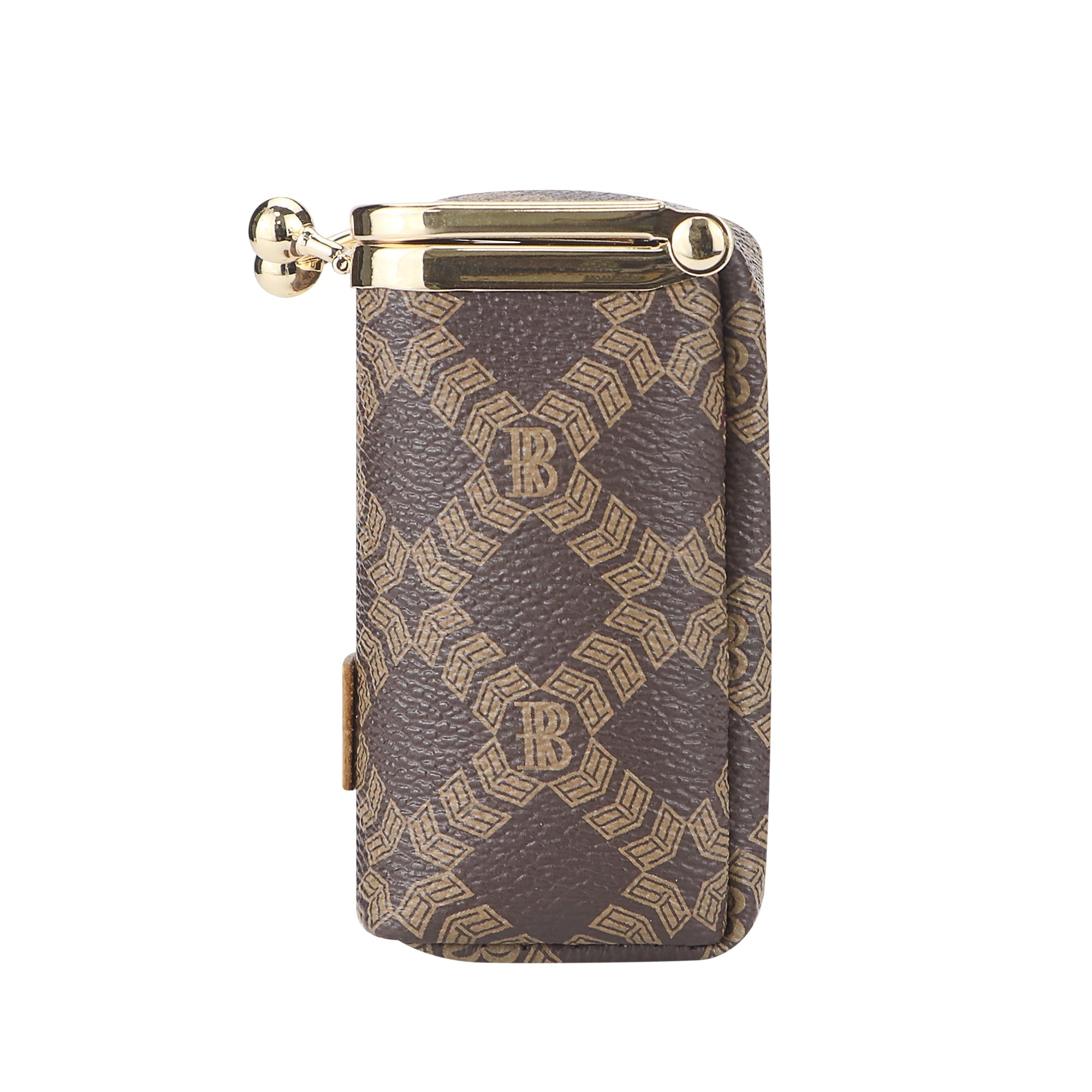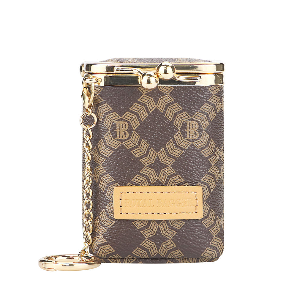 Royal Bagger Women's Mini Chain Cosmetics Case, Signature Coated Canvas & Vegetable-Tanned Cowhide Leather Kiss Lock Purse, Small Makeup Bag with Mirror 5241