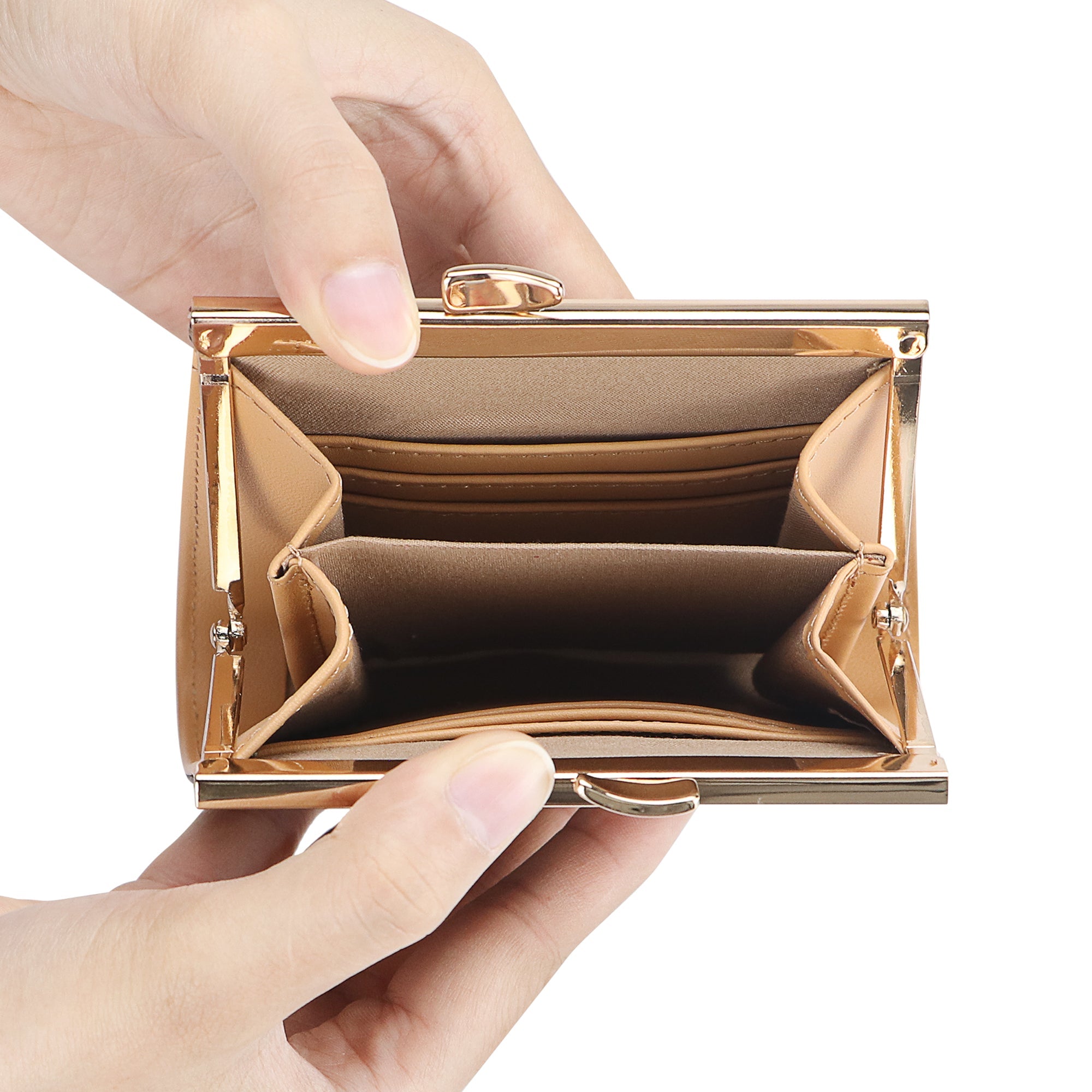 Royal Bagger Women’s RFID Credit Card Holder Wallet – Vintage Coin Purse with Signature Coated Canvas & Vegetable-Tanned Cowhide Leather, Kiss Lock Short Wallet 5242