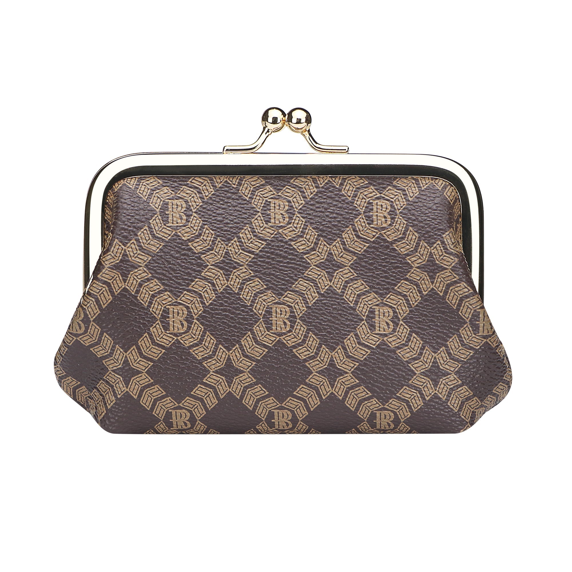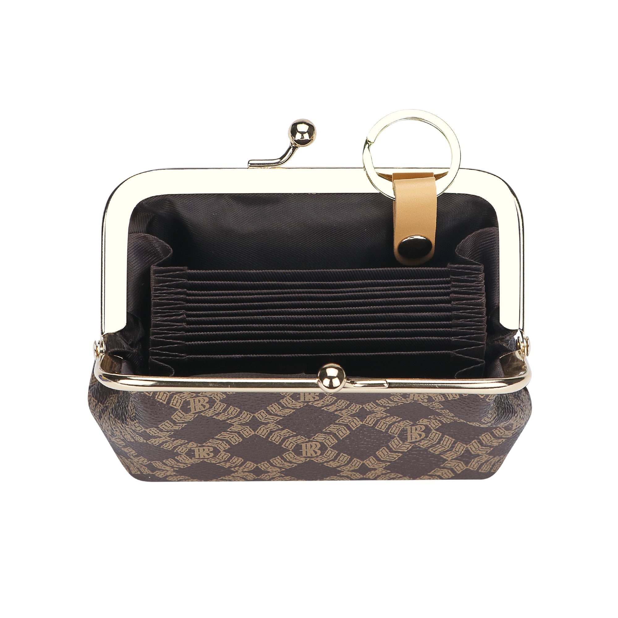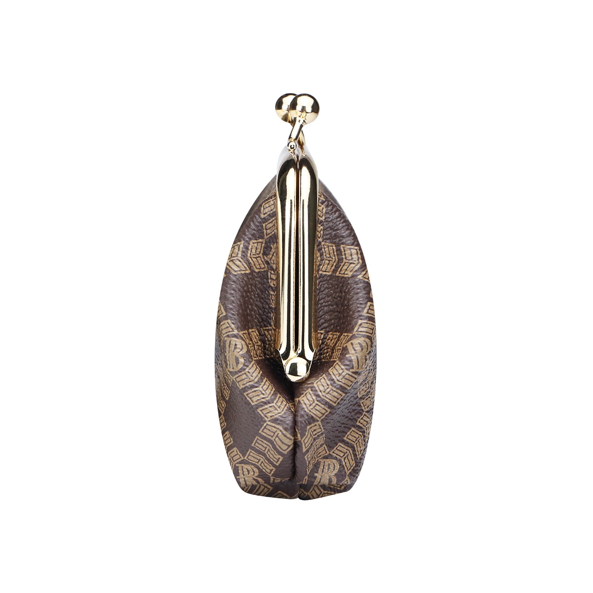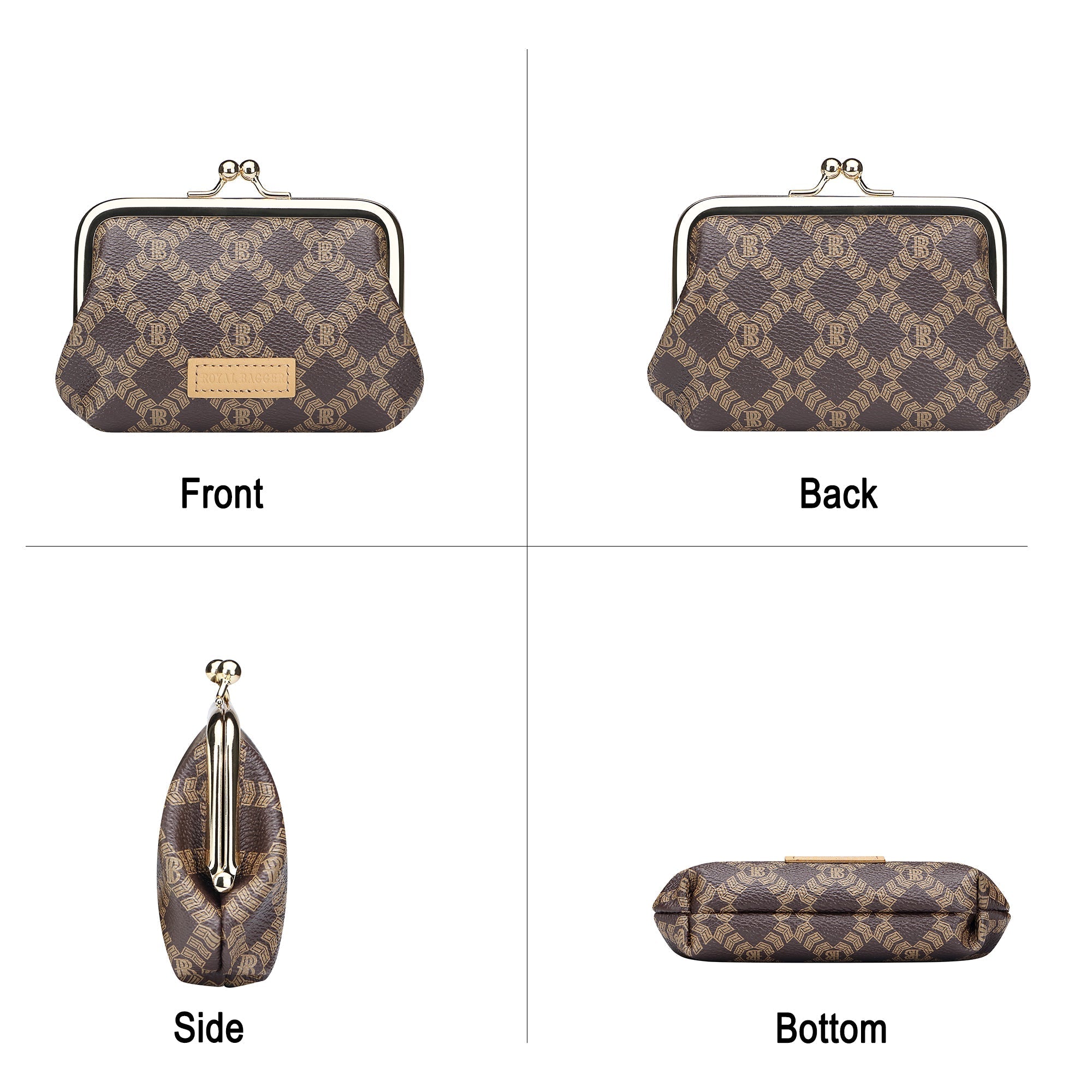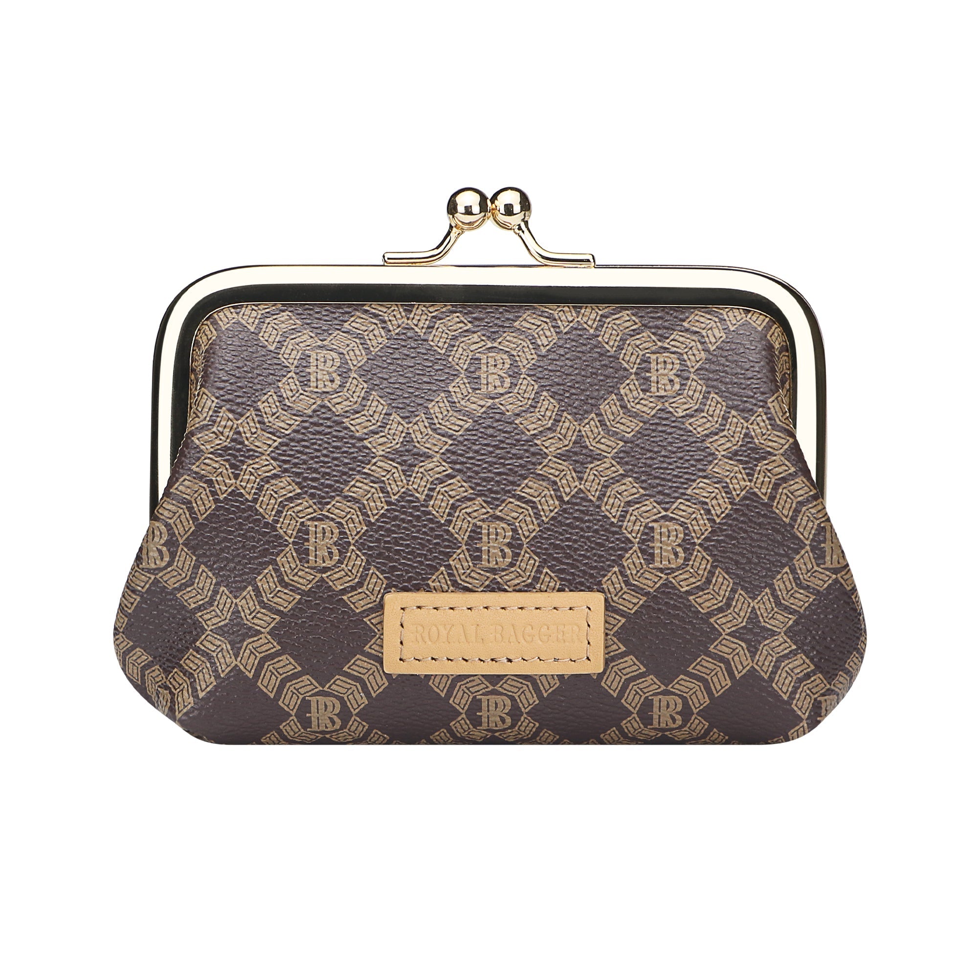 Royal Bagger Retro Kiss Lock RFID Card Holder & Coin Purse for Women, Signature Coated Canvas & Vegetable-Tanned Leather Mini Keychain Wallet, Compact Storage Bag 5243